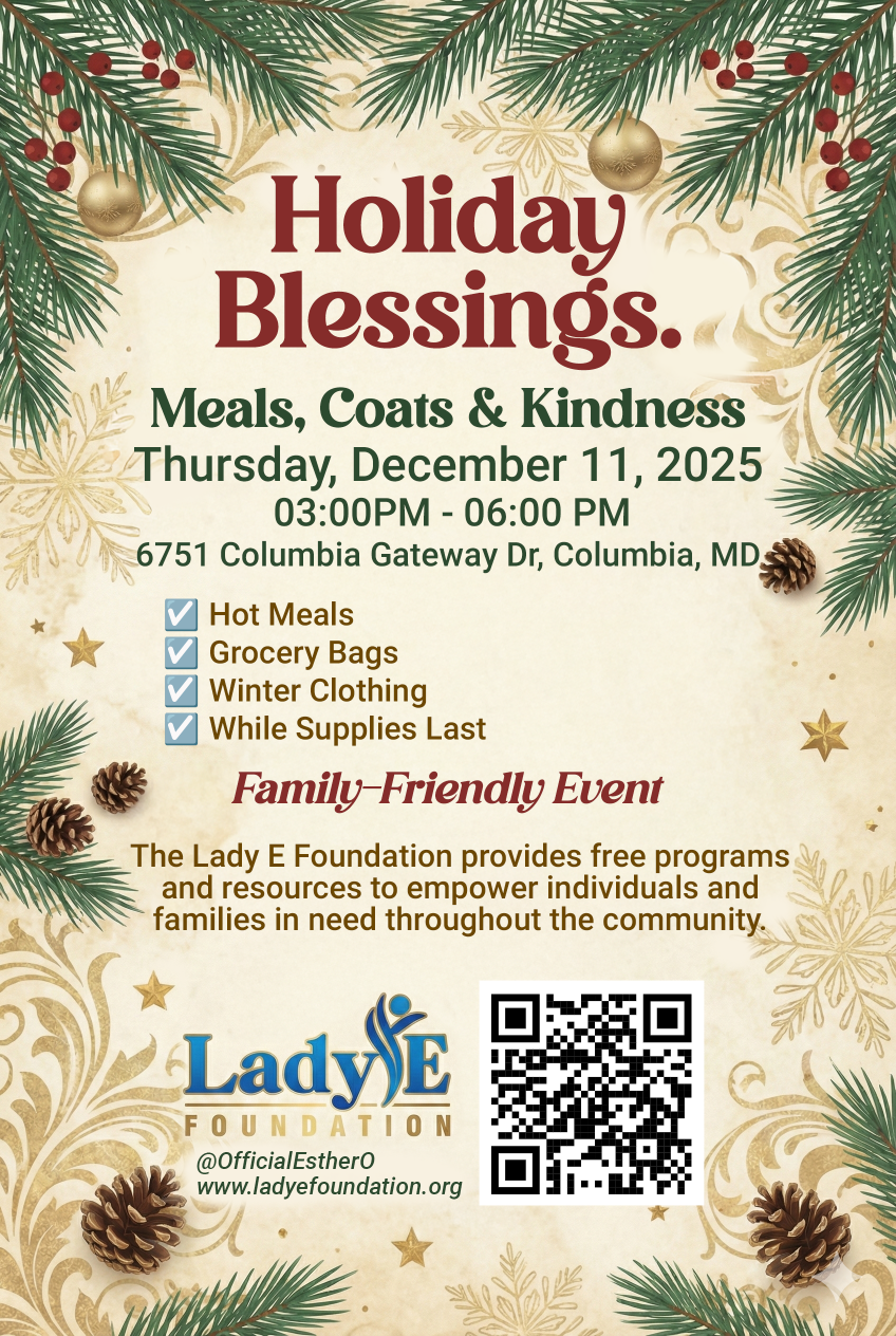 Lady E Foundation (Lady E) is a minority/woman owned nonprofit, in Columbia, Maryland, founded in 2018 by President and CEO, Esther Osakwe.